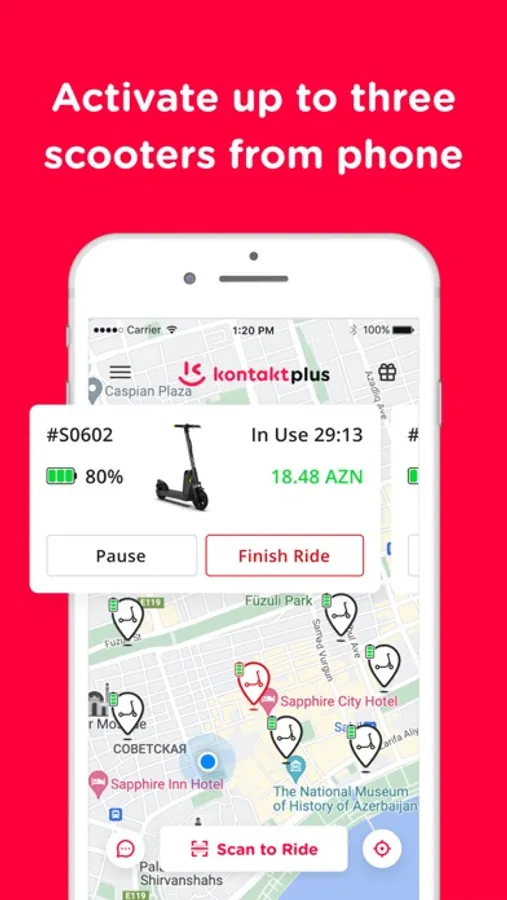3. Tətbiq vasitəsilə skuterdəki QR kodunu skan et və səyahətdən həzz al.