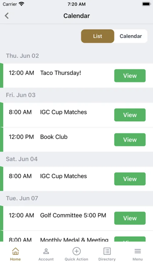 - View Club Calendar
