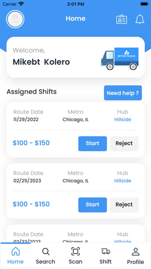 The Better Trucks Shift app lets delivery drivers across the country sign up, drive, and get paid the same day for shifts that they work. Sign up today and get paid every day you work with our team!