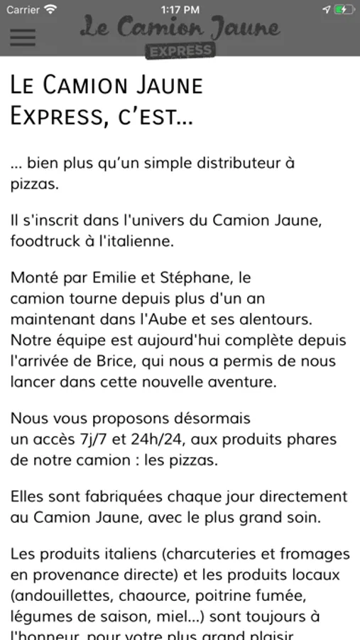 - Fraicheur : les pizzas sont fabriquées, chaque jour, directement au Camion Jaune, avec le plus grand soin