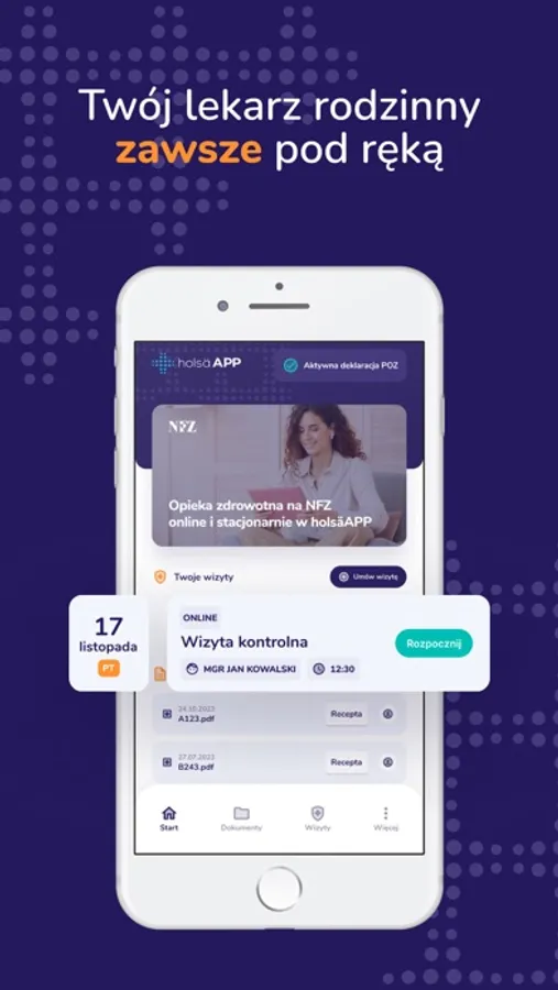 Dzięki holsäAPP To Ty decydujesz o tym w jakim trybie – online w aplikacji czy stacjonarnie w przychodni – odbędziesz konsultację z lekarzem POZ w ramach NFZ. To daje Ci nieograniczony dostęp do opieki zdrowotnej - 7 dni w tygodniu oraz w święta, z każdego miejsca, kiedy tylko potrzebujesz skonsultować się z lekarzem. Wizyty stacjonarne odbywają się w Centrum Medycznym holsäMED w Katowicach, przy ul. Kościuszki 229.
