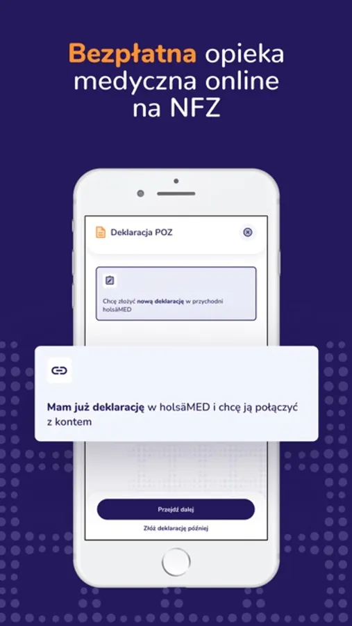 - Umów wizytę testową i sprawdź jak działa holsäAPP lub zarejestruj konto i zapisz się do przychodni holsäMED składając standardową deklarację POZ