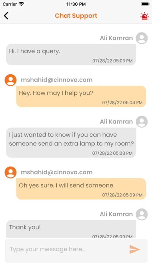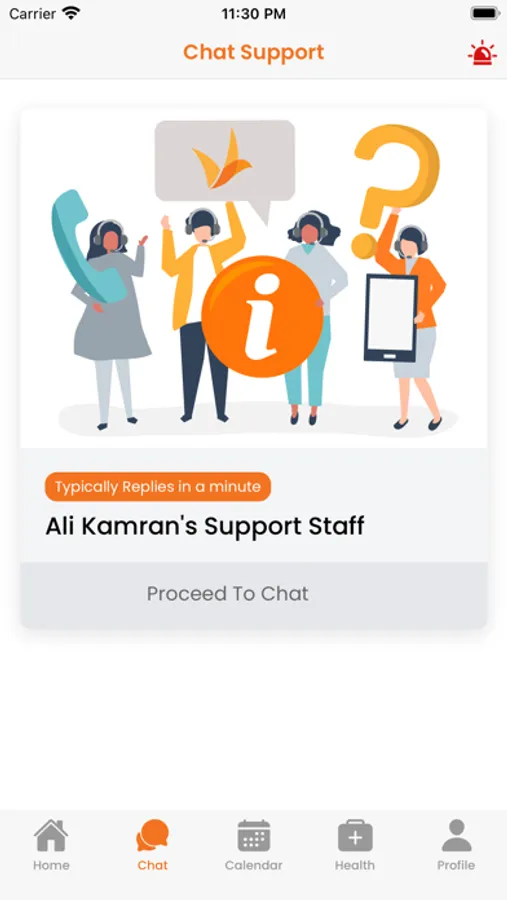 • Emergency Call - your one-touch alert to staff for support