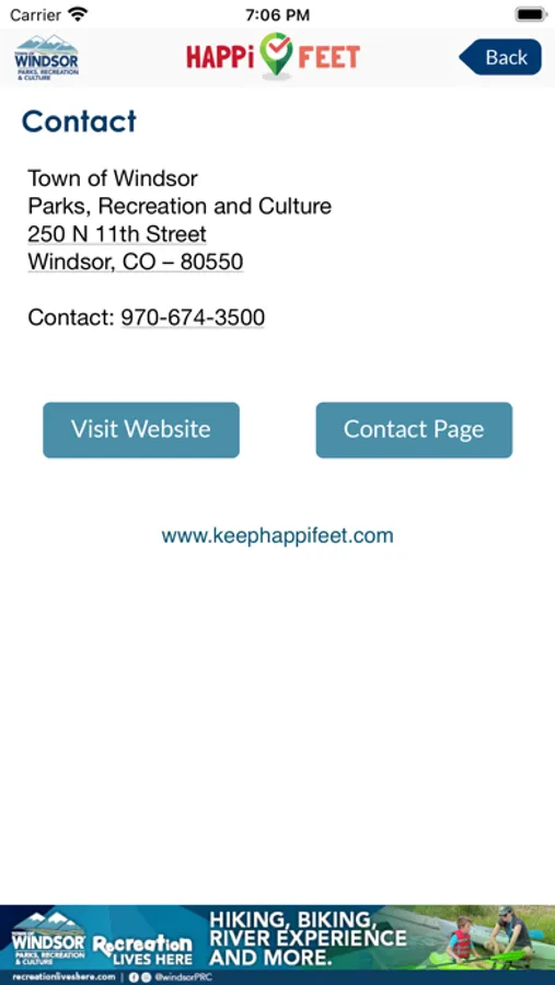 Tap screen to call or email parks and recreation from your mobile device
