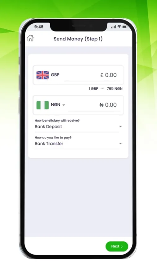 d. Select how your beneficiary will get the money sent (bank account deposit)