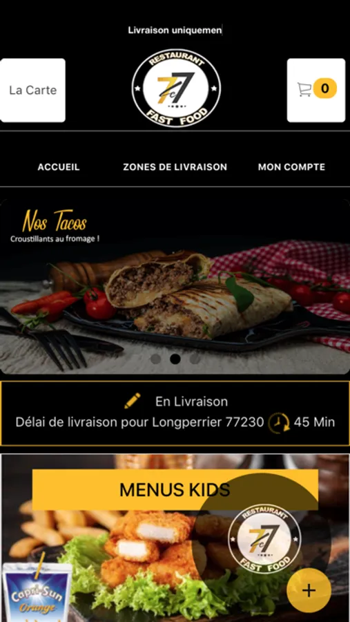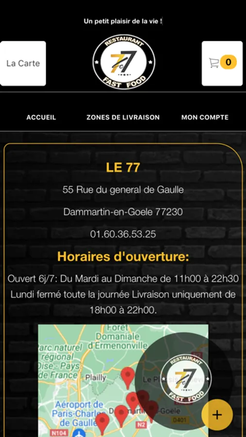 L'application LE 77 vous permet de commander en ligne ou par téléphone via votre application. Vous pouvez consulter notre carte et choisir vos produits.