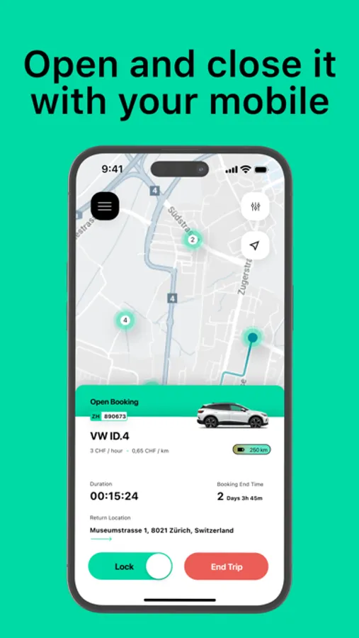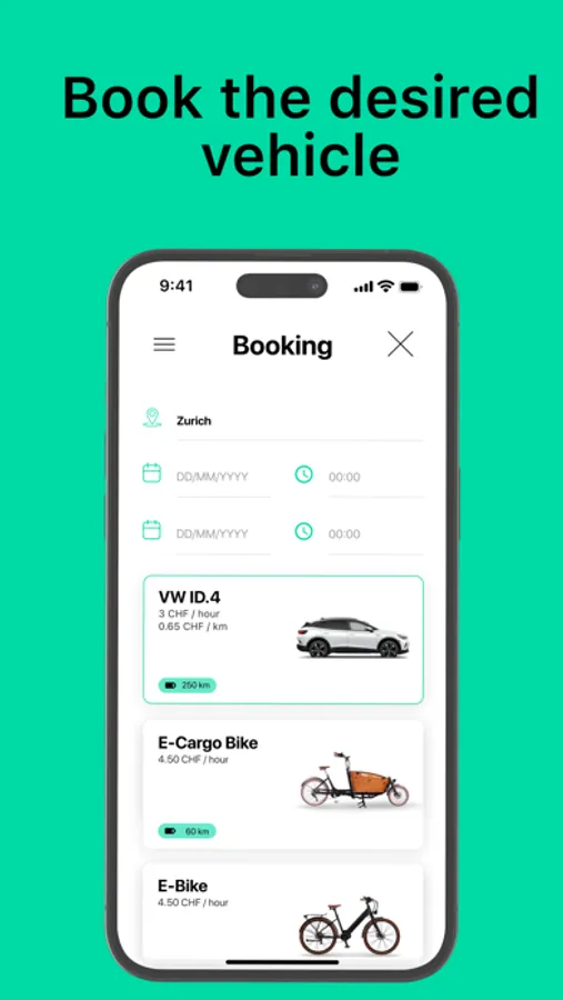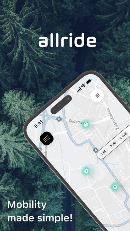 Simply download the app, register and book the desired mobility solution with just a few clicks via the app. Whether car, e-bike, or e-cargo bike - with the allride app, the smartphone becomes your vehicle key.