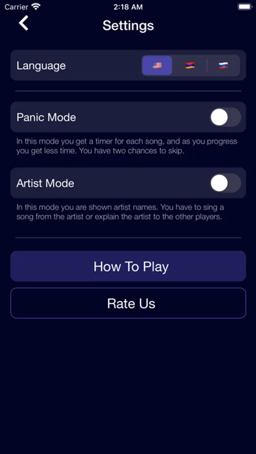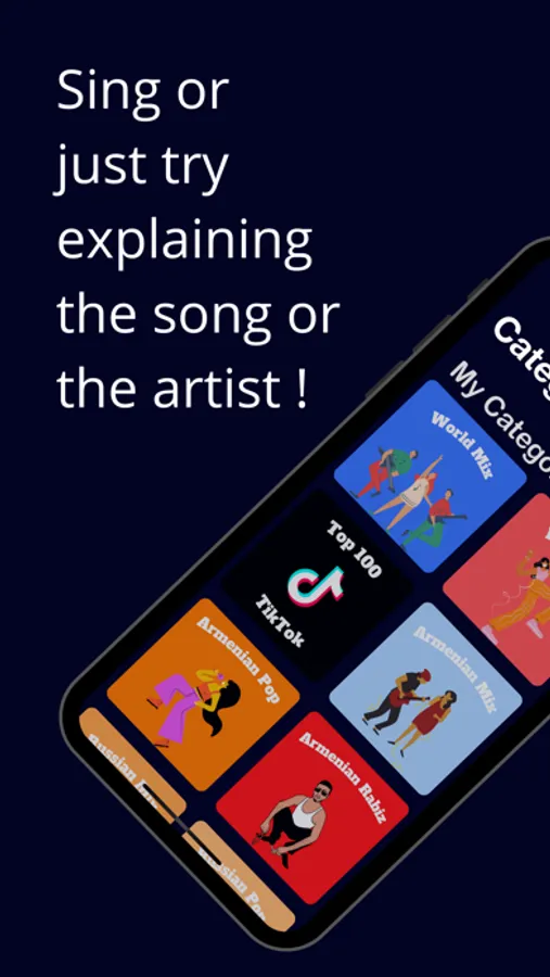 Choose from the variety of languages and genres. From Armenian Rabiz, to world Hip-Hop hits, to Russian Pop - Guess the song from your friends' singing or sing it yourself while your friends guess. Or just play alone. Be wary there is a timer ticking!