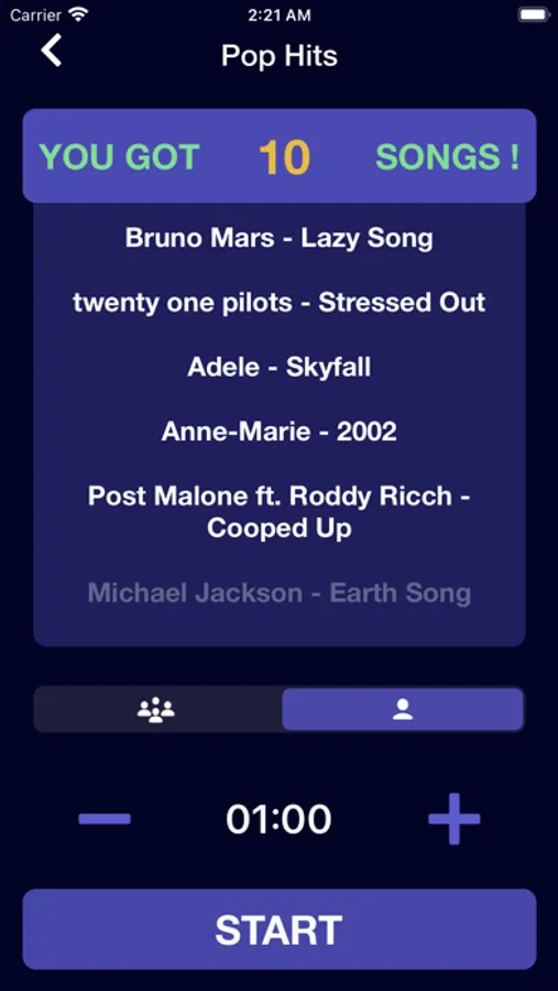 Pick a category that you would like to play, press the single player icon, then choose the duration of the game and press “Start”. 3, 2, 1! GO! Listen carefully to the 10 second cut of the song and choose the correct name from the 4 options! Remember all your favorite songs and most importantly have fun while doing it!