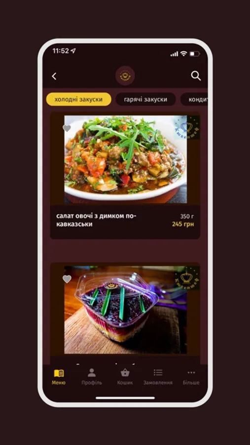 З додатком Кюхеншеф ви зможете дізнатися актуальний асортимент наших кулінарних досягнень та зробити попереднє замовлення.