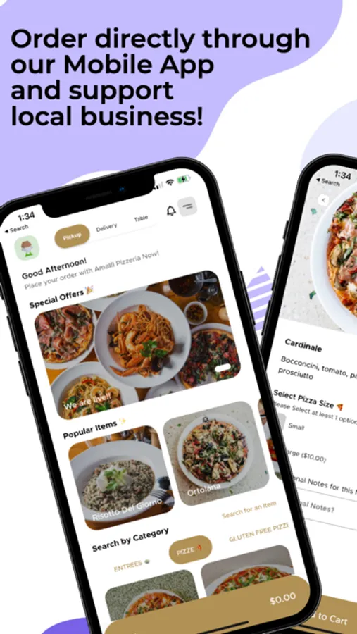 Download the Amalfi Pizzeria App today to gain access to our full menu, order through the app, receive exclusive in-app discounts and gain reward points for each order to use on future purchases!