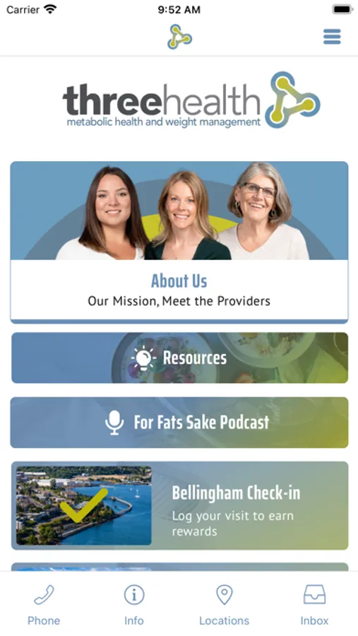 The ThreeHealth App is designed to provide valuable content related to Metabolic and Behavioral Health and a way to stay connected to all that we offer. Within the ThreeHealth app you will be able to schedule appointments and reach out to ThreeHealth staff. You will have early access to exclusive deals and opportunities only available to the ThreeHealth Community. You will get push notifications regarding events and specials. You will also be able to track loyalty points that you can use on products, services, events and retreats.