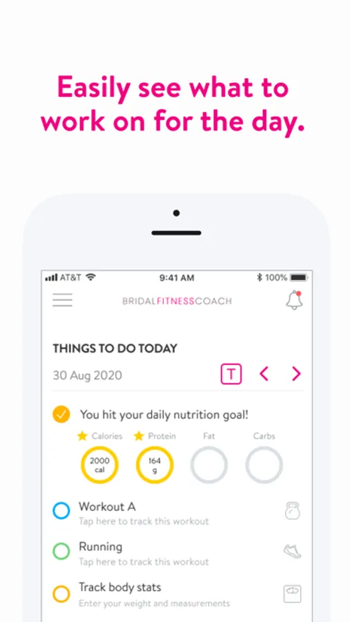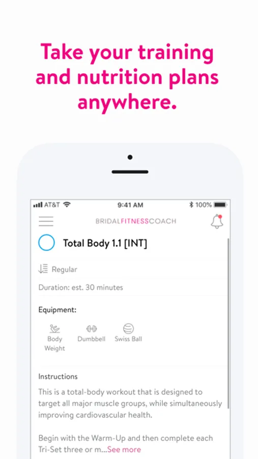 With the Bridal Fitness Coach App, you can track your workouts and meals, measure results, and achieve your fitness goals, all with the help of your coach.