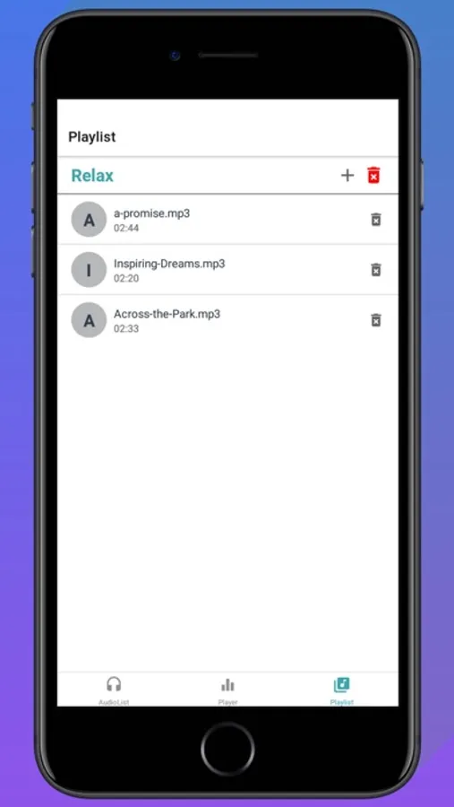 Once app get access to media files on device audio list screen of app shows all of the audio files in the screen