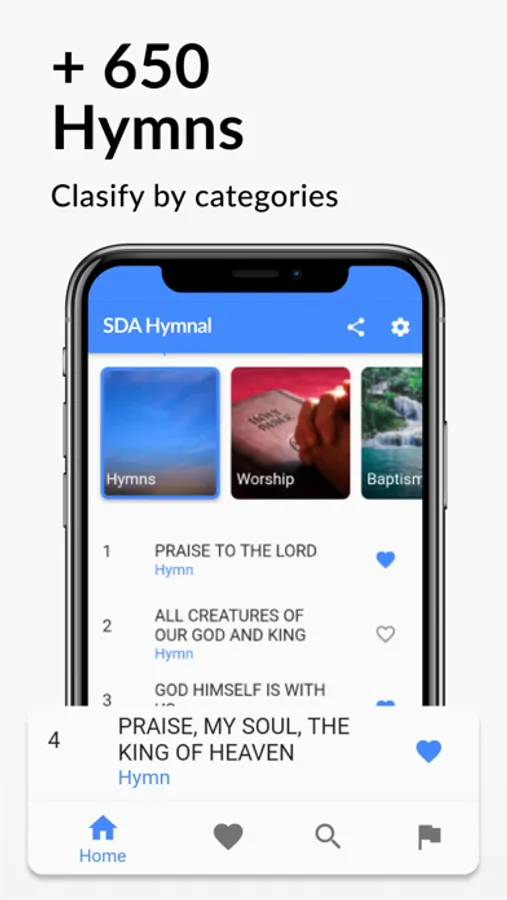 The Hymnal application contains more than 360 hymns and with the following classification: