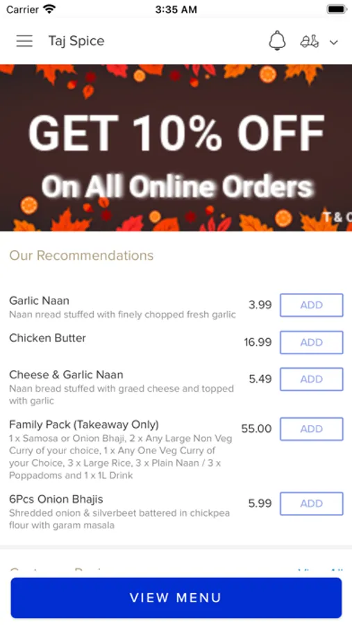We offer a world of flavours and spices, which all comes together to create a dining experience that will transport you to another world. Our chef prepares all of our authentic dishes completely fresh, we also offer a wide range of authentic Indian cuisine to suit anyone's tastes. We have a new online ordering website which displays our entire menu - so please feel free to browse, find your favourite or try something new, and enjoy our restaurant quality meals in the comfort of your own home.