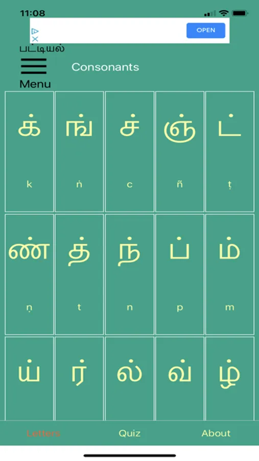 Then, move on to consonants. Then, try the quiz with the consonant-vowel combinations.
