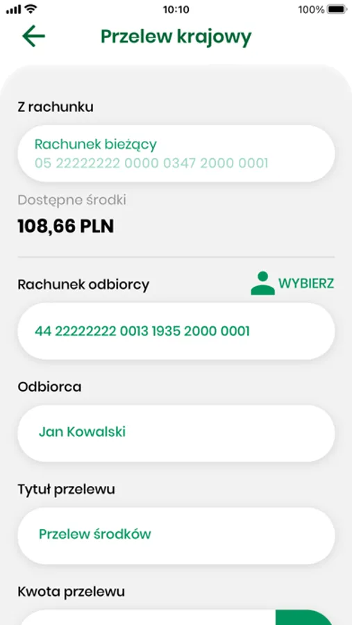- wykonywanie przelewów krajowych, własnych i doładowań telefonów,