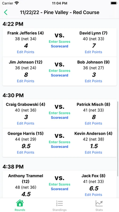 Give us your tee times and golfers, we'll do the rest. Your full season schedule planned out for as many weeks as you want. Don't use a schedule? No problem. You can take it round-by-round too.