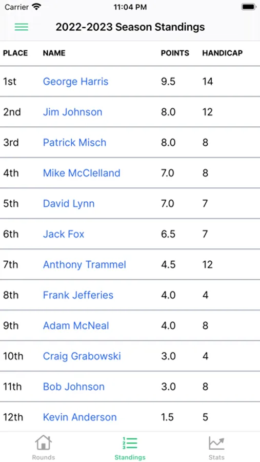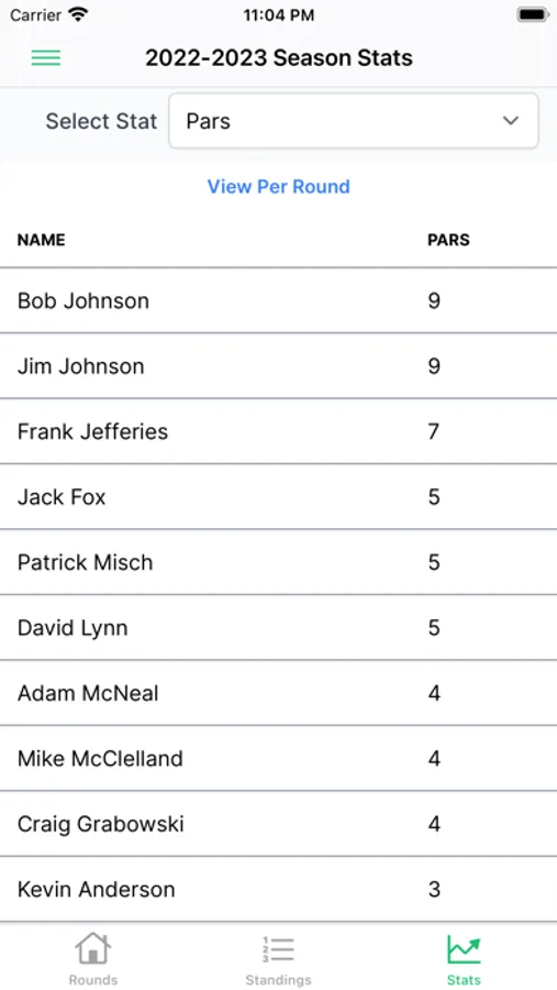 Aside from standings, we track all kinds of fun stats like pars, birdies, average scores and more.