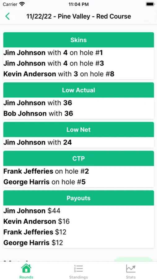 Enjoy a beer after your round instead of figuring out who won skins. Everyone will know as soon as the round is done. We'll also tell you how much cash each winner gets.