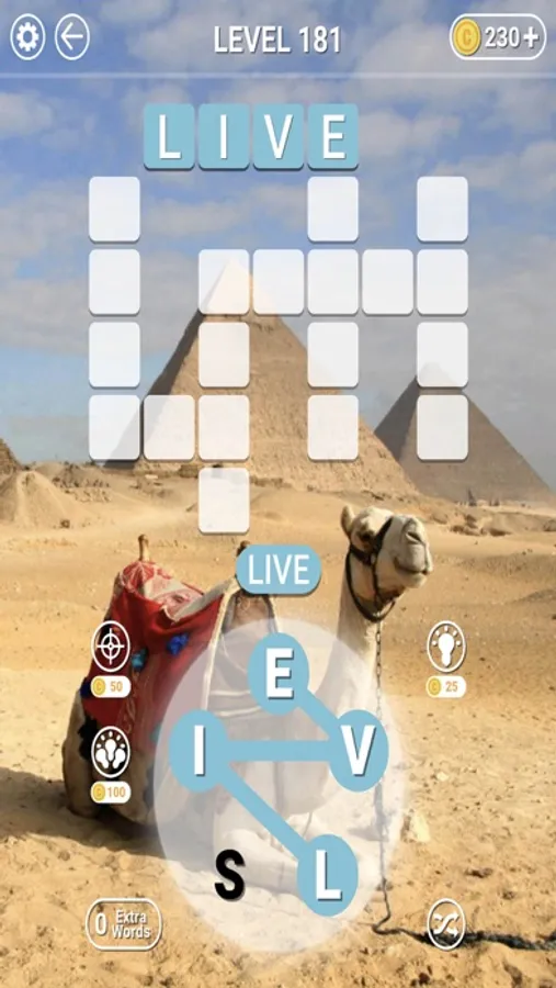 Keep your mind active with this challenging word game. See how many words you can make out of a set of letters, in a crossword style format to help you find the words. And travel the world as you play! Each level not only gets progressively harder, but you will be taken on a trip around the world seeing exotic places and wonderful vistas. Make it all the way around and then take off into space! Face the challenge of extra and hidden words, and if you find yourself getting stuck, use one of the several 'boosters' to reveal letters. See how well you are doing against others worldwide with the leaderboard. Take a chance each day on our wheel of luck to see how many coins you can win to help you on your quest to solve the word puzzles. Over 1000 levels in this launch version, with thousands more levels to come.