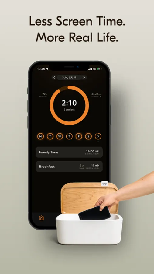Paired with the smart box, the Aro app gamifies the experience of putting down your phone. It helps you set personalized goals, and motivates and encourages you to build the habit of putting down your phone.