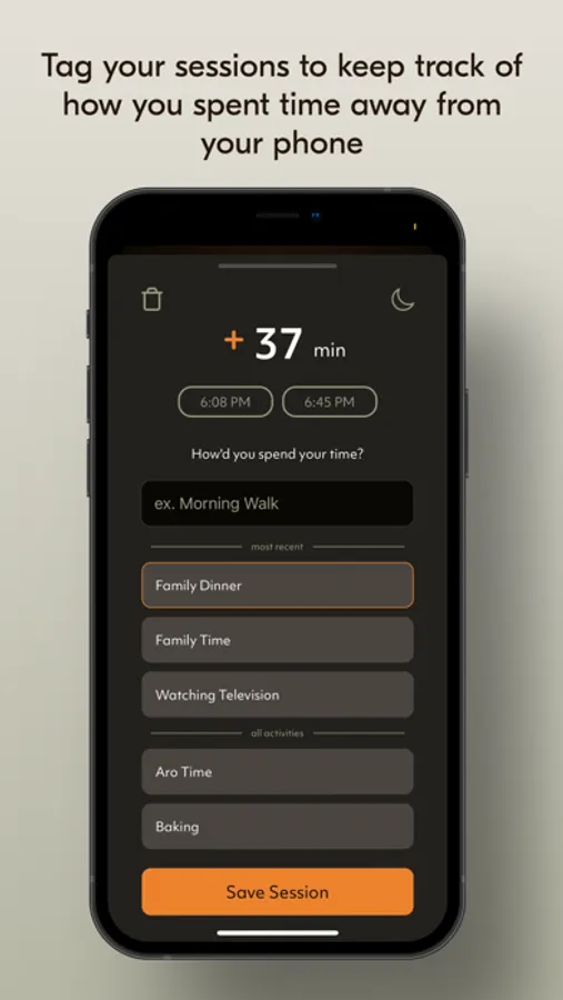 Measure Your Intentional Time: Tag your sessions to keep track of how you spend intentional time away from your phone.