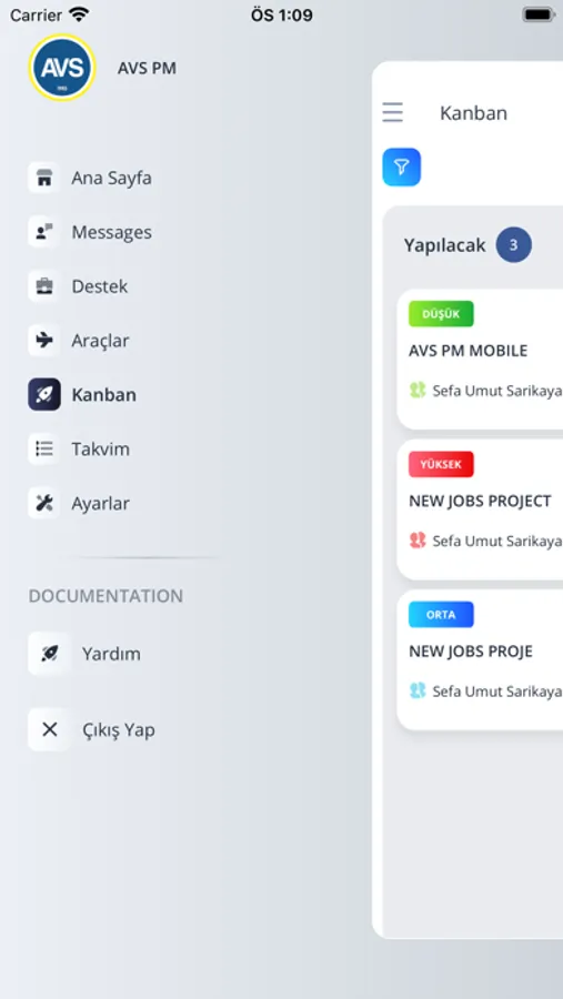 Şirket içerisinde, proje yönetimi, araç yönetimi, mesajlaşma, iş yönetimi ve takvim/görüşme yönetimi içeren uygulama.