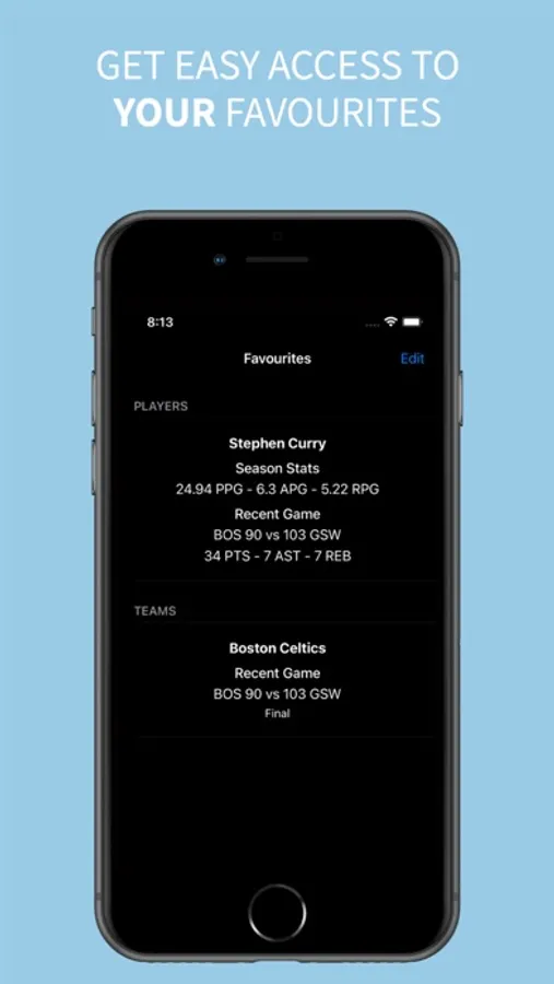 Get easy access to your favourite players and teams for all the information you need as soon as you open the app.