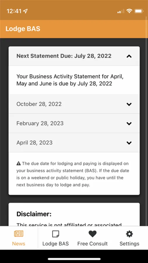 BAS Lodgement Reminders notifies you when your Business Activity Statement (BAS) is due.
