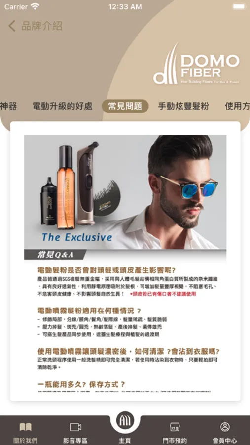 DOMO HAIR 科技假髮 / WE CARE 醫療假髮 / DOMO FIBER 炫豐髮粉 / HAIR PLUS 微增髮片 / HAIR STICK 貼片式接髮/ M.F.H 韓系造型髮