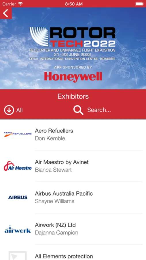 The ROTORTECH 2022 Helicopter and Unmanned Flight Exposition is the premier industry event for the Helicopter/Rotary Wing and RPAS/UAV/eVTOL community in Australia, New Zealand and the Indo-Asia-Pacific region. Registered exhibitors and trade visitors of ROTORTECH 2022 can access the official event app sponsored by Honeywell. The ROTORTECH 2022 app contains up-to-date event information including floor plans, stand locations, exhibitor profiles, sponsor profiles as well as the conference schedules. Exhibiting companies are listed with company information available at the touch of a button.