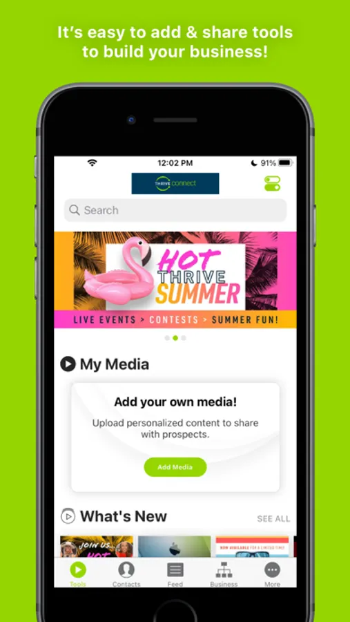 With the Thrive Connect app, you can easily share your way to success with tools that create word-of-mouth buzz and complement belly-to-belly efforts! Connect with new contacts and interact with your team by sharing exclusive, corporate-approved tools. You’ll have a vast array of marketing materials like videos, images, and more—all right at your fingertips! The powerful, yet beautifully simple design, along with compelling tools, makes growing your business simpler than ever.