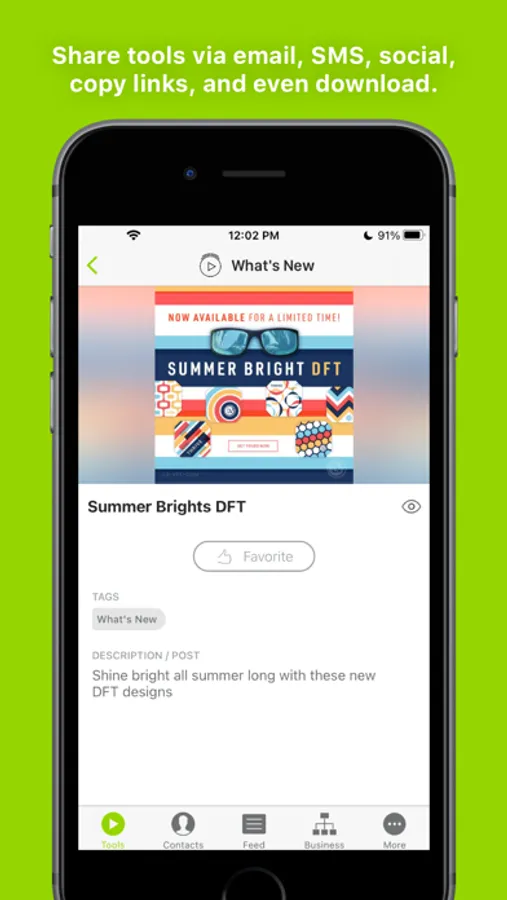 Tools: It has never been easier to share information about your products and opportunity via SMS text, email, or social media. Simply choose tools specifically designed to promote your business and share them with a contact. You’ll receive a notification when contacts view a tool so you know exactly when to follow up! You can even add your own tools. Record or upload short videos to share with prospects. You can even add actions to your videos so prospects can interact directly in the video. These smarter interactive tools are called a Brightool and they provide more data for follow up with ActionAlert notifications in the Feed. No data connection? No problem! Simply download tools such as videos in the app beforehand for offline playback.