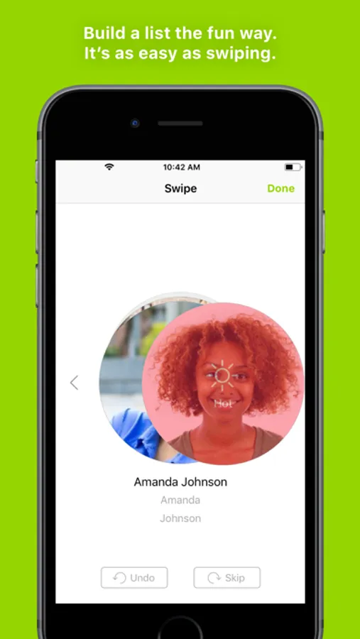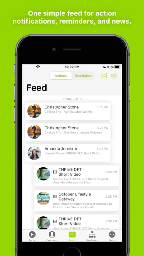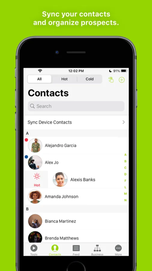 Contacts: Choose how to sync and manage your contacts. Swipe to sort them by interest level. You can make connections, add notes, or check out the Contact Feed to see the tools you’ve shared and contact actions.