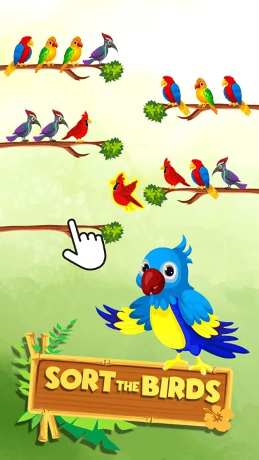 Bird Color Sort is a fun and addictive puzzle game! Try to sort the colored bird on the tree branch until all the birds have the same color and fly away. Water sort puzzle games are no longer unique. With the new style of sorting games with colored birds and birds, singing brings definitely a challenging yet relaxing game to train your brain! ASMR sounds in each category of Birds.