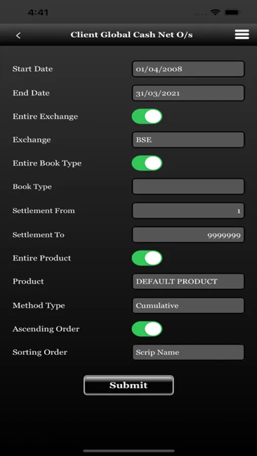 - Global Cash Net O/S ( Client Wise / Scrip Wise )