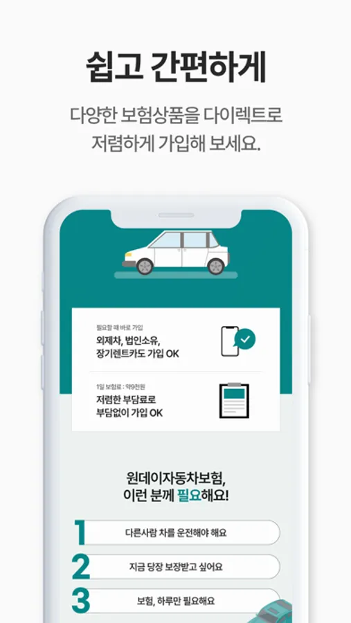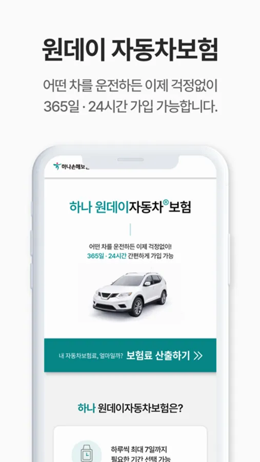 하루씩, 최대7일까지! 저렴한 보험료로 빠르고 간편하게 가입 가능!