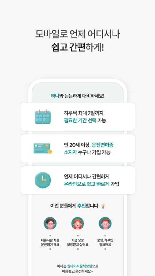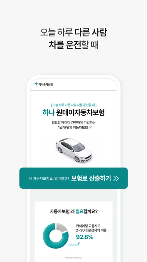 다른사람 차를 운전해야 한다거나, 보험이 하루만 필요할 때!