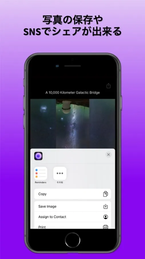 受け取った写真は、写真フォルダに保存したり、SNSなどでシェアすることができます。