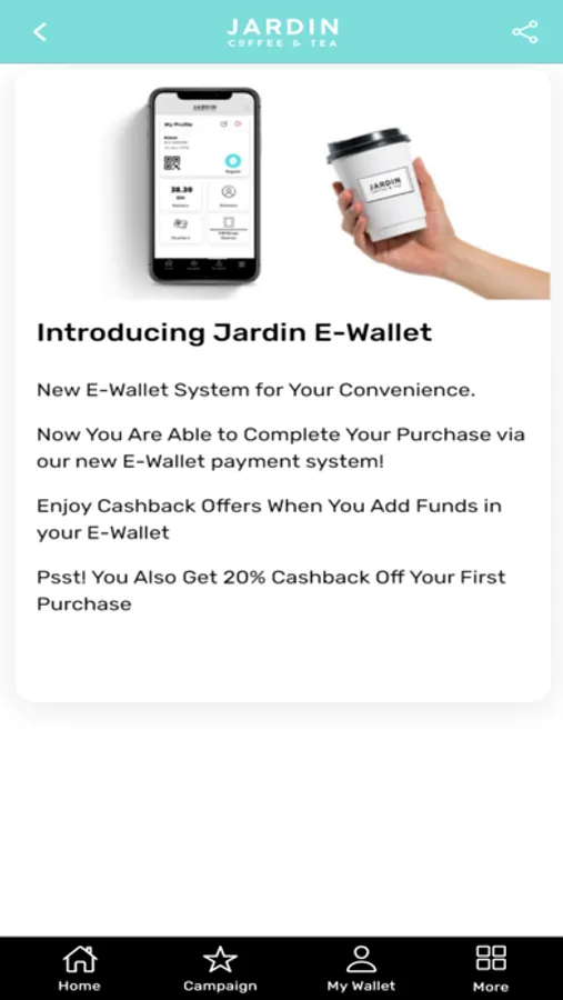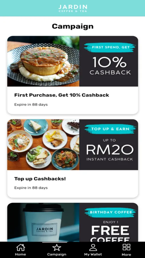 Introducing Jardin loyalty App! Patrons now get to enjoy exciting new offers through our new platform. Psst! Sign up now and get a free coffee. T&C Apply.