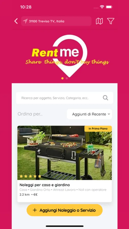 Che tu voglia condividere Cose o Servizi nella tua zona, oppure Usufruire di tali Cose e Servizi con la comodità di una piattaforma dedicata; Rentme è l’app giusta per te, simile a una comunity della condivisione in vetrina. Puoi Condividere immediatamente Cose e servizi in community, contattare e fare affari, tutto a portata di mano.