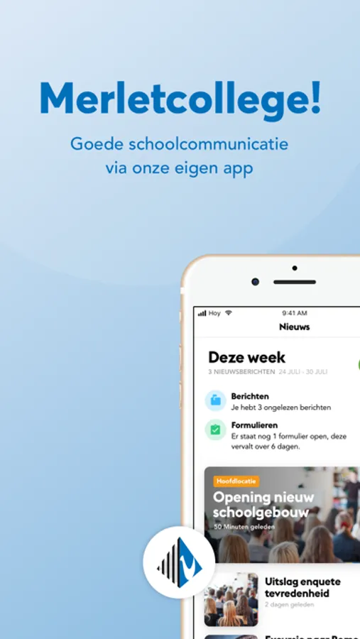 Are you a parent, student or employee of Merletcollege? Then download the Merletcollege app and log in with the account info you've received via e-mail. Didn't receive an invitation, but still want to check the latest news of Merletcollege? That's also possible without login!
