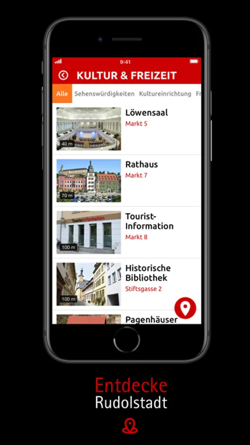 Entdecke Rudolstadt und seine Orte! Wo ist der nächste Parkplatz oder die nächste Ladesäule für Elektroautos, das nächste Café oder etwas Sehenswertes? Starte deine Navigation zum Ziel direkt aus der Rudolstadt App heraus. Noch viel mehr Orte werden folgen und noch viel mehr Funktion.