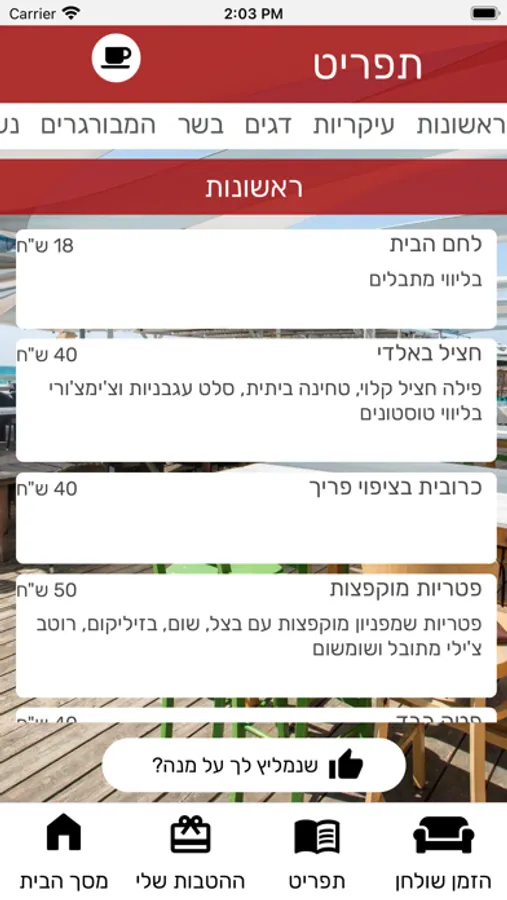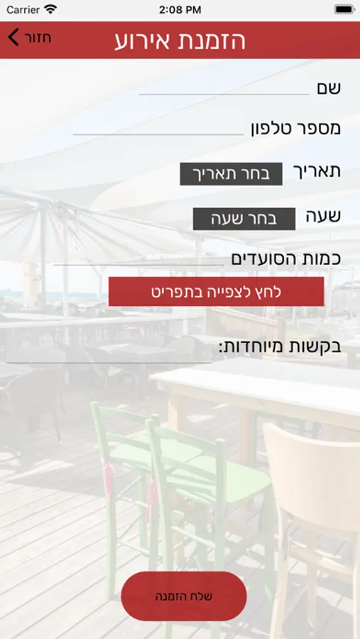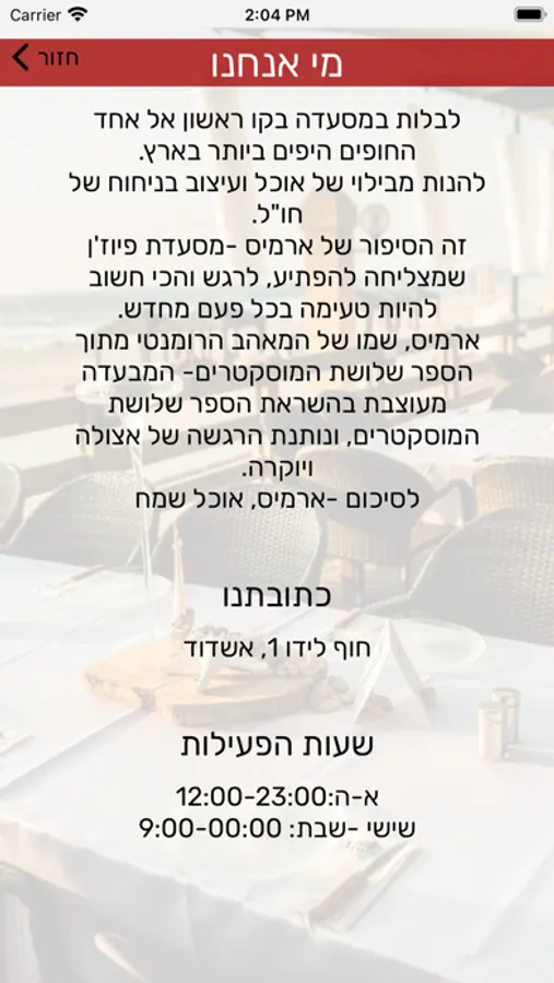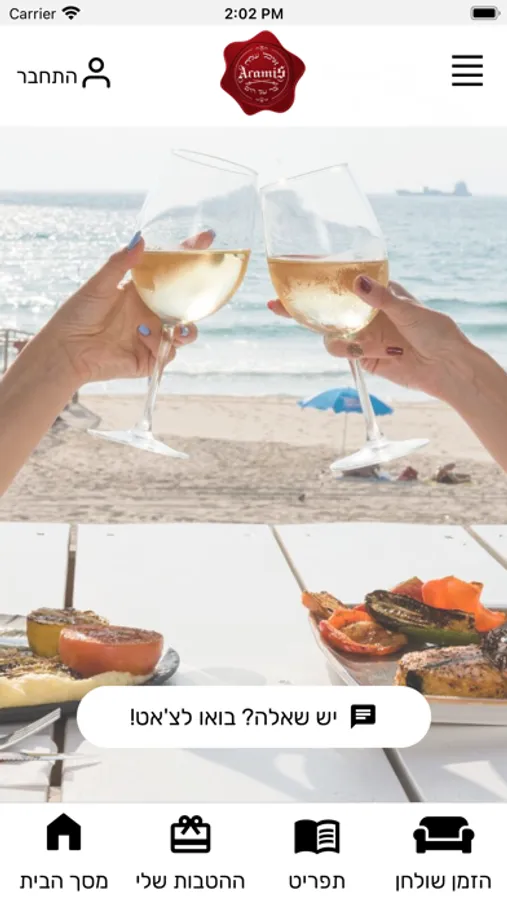 ברוך הבא לאפליקציה של מסעדת ארמיס! היכנסו ותוכלו להנות מהזמנות מקום ,צ'אט עדכונים שוטפים תפריט הטבות והכל במקום אחד!