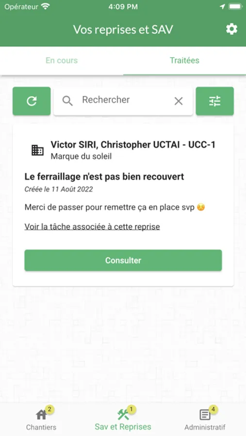- vos chantiers en cours