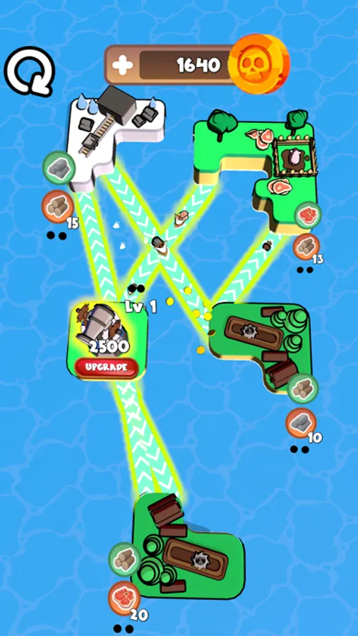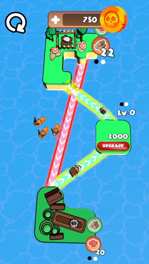 By using simple swipe controls, connect the islands together to tend to their production needs. Beware of pirates blocking your paths and upgrade your base to fend them off!