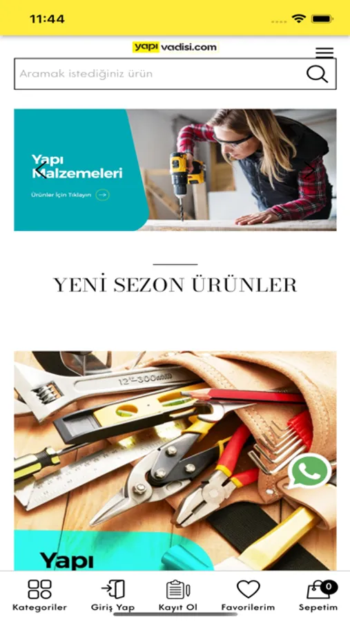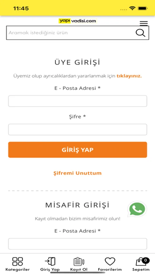 Yapı Vadisi uygulaması ile kayıt olabilir indirimli ürünlerden haberdar olabilirsiniz. Misafir olarak giriş yapabilirsiniz.