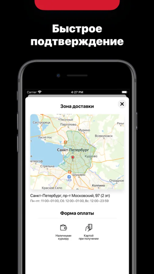 — Быстрый заказ с мгновенным подтверждением через приложение.
